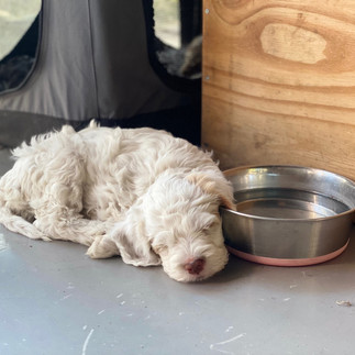 Og køreturen ud og hjem, denne gang i bur i Fiat'en og med taget nede gik også så fint. Det er dejligt at se, at de er lige så ok med at køre i en anden bil og med andre lyde og uden Arthur og Alba.